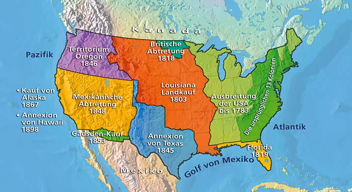 Mit dem Louisiana Landkauf des Jahres 1803 verdoppelte sich die Landfläche der USA. Damit erwarben die USA wertvolle Bodenschätze, die wesentlich zu ihrem Aufstieg als Weltmacht beitrugen.